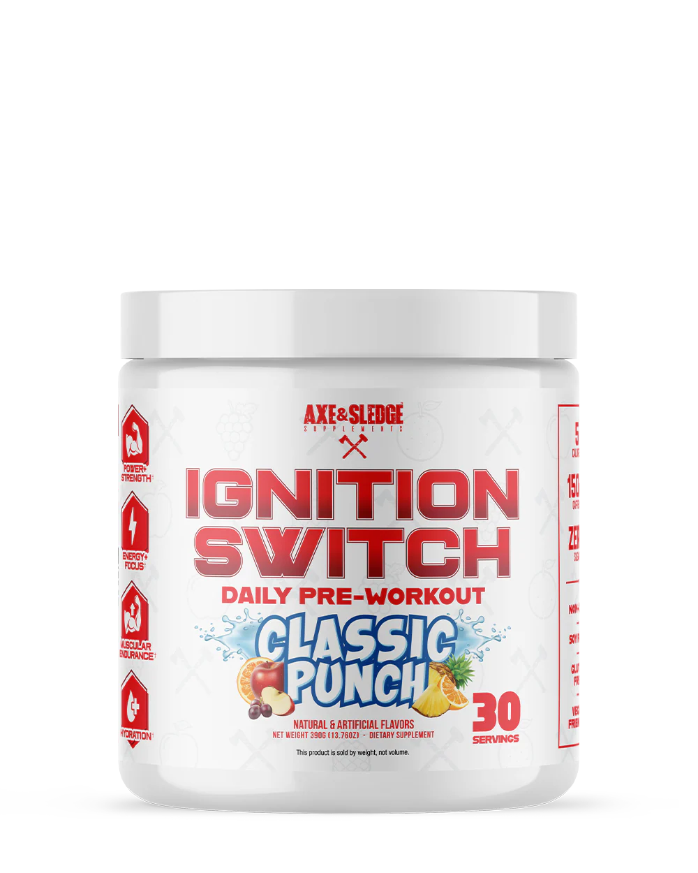 Looking for explosive energy, tunnel-vision focus, and unstoppable endurance? Ignition Switch by Axe & Sledge is your go-to high-stimulant pre-workout supplement, formulated for hard-working athletes, bodybuilders, and serious fitness enthusiasts who demand more from every training session.